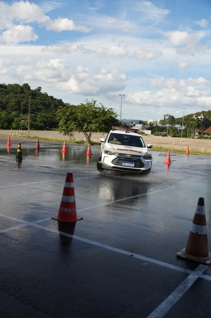 Nesta terça e quarta-feira (14 e 15/4), policiais do 17º Batalhão da Polícia Militar (BPM) de Joinville, participam do treinamento de direção defensiva, na Expoville.