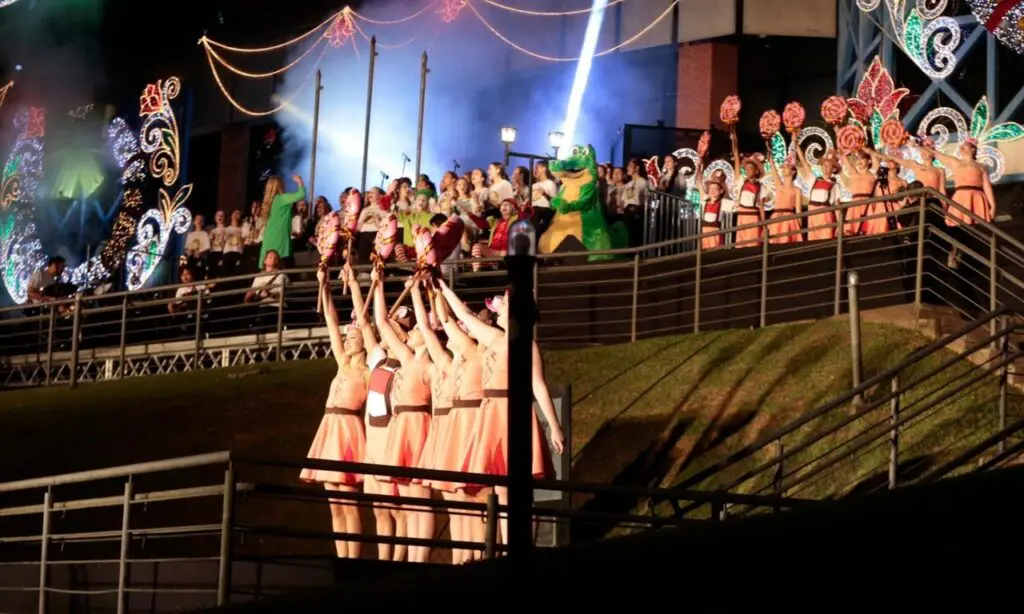 Ao todo, mais de 130 pessoas participaram do espetáculo. Coral Infantojuvenil da Arte Maior, dirigido por Kátia Siqueira, contou com 80 coralistas. Eles cantaram ritmos conhecidos, como “Vem chegando o Natal”; “Blim-Blom”, tema do Natal de Joinville “We Wish You a Merry Christmas”, “Jingle Bells Rock”, entre outras canções.