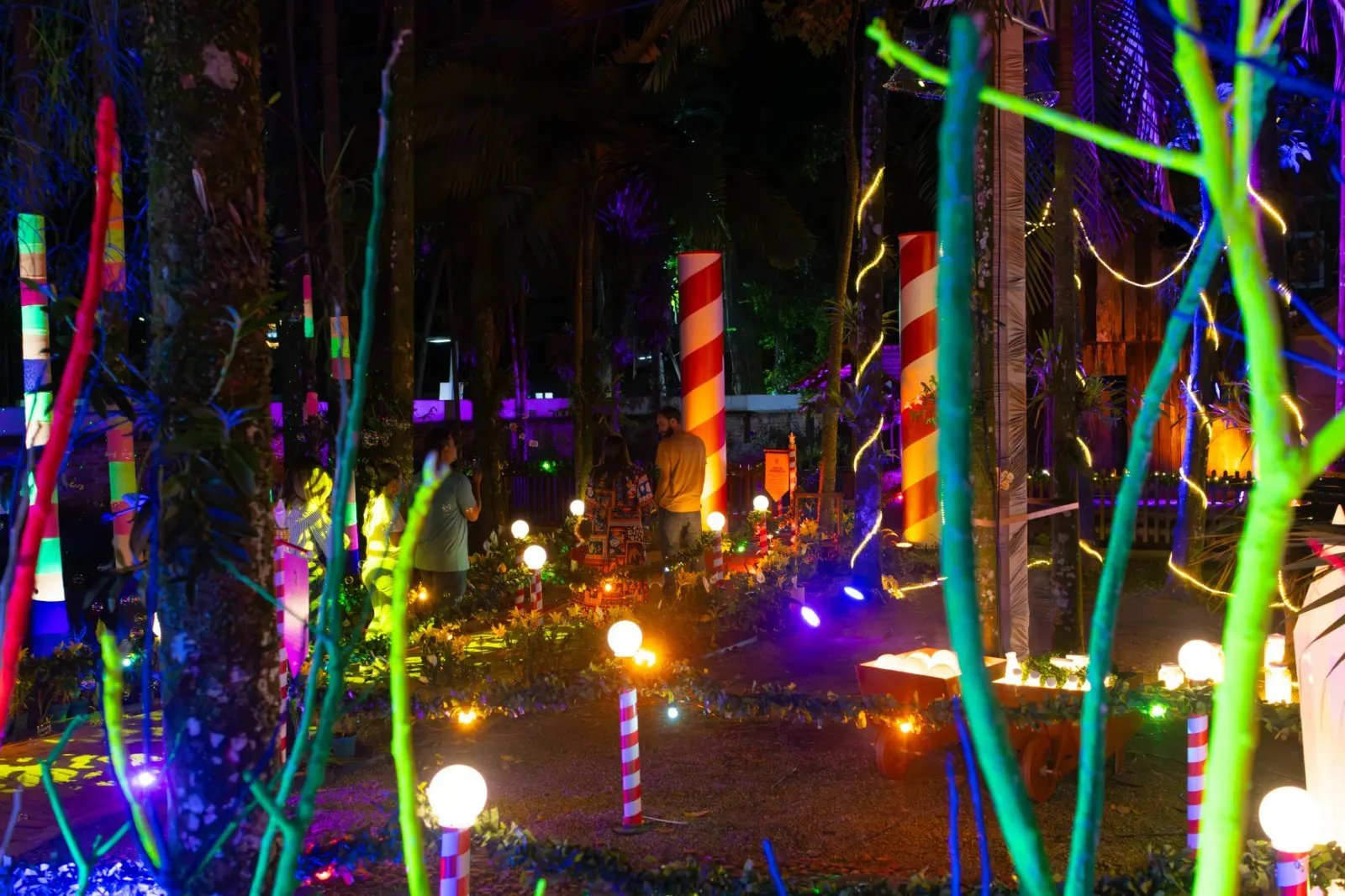 Uma das grandes novidades desta edição do Natal de Joinville, o Bosque Encantado – Caminho de Luzes está aberto ao público. Localizado no jardim do Museu Nacional da Imigração e Colonização (MNIC), na Rua Rio Branco, o espaço encanta os visitantes que percorrem o caminho iluminado.