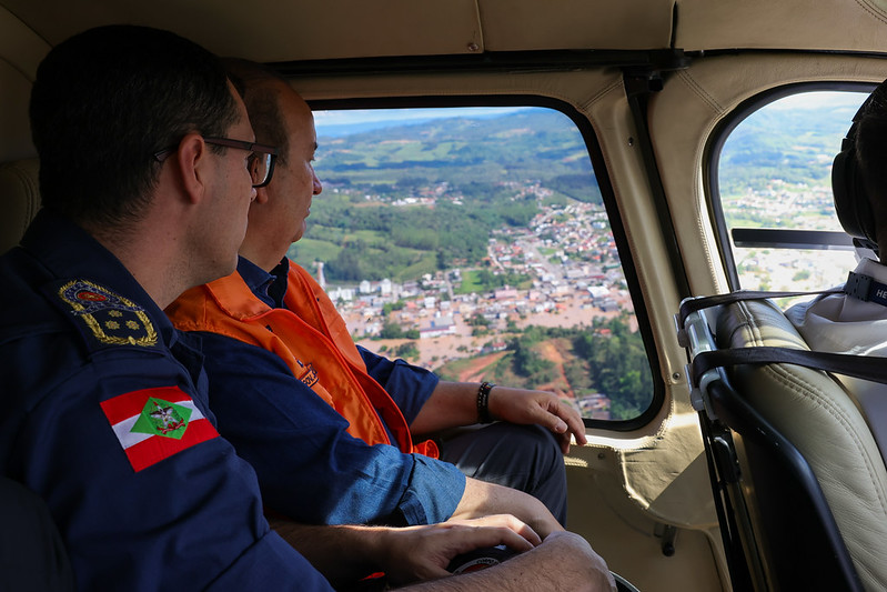 Na segunda-feira, 9 de outubro, o governador Jorginho Mello sobrevoou a área de Taió, visitando o município fortemente impactado pelas enchentes. Até o momento, 135 municípios catarinenses enfrentam consequências das chuvas torrenciais que assolam o estado desde a semana passada, conforme o relatório atualizado pela Defesa Civil por volta das 18h do mesmo dia.