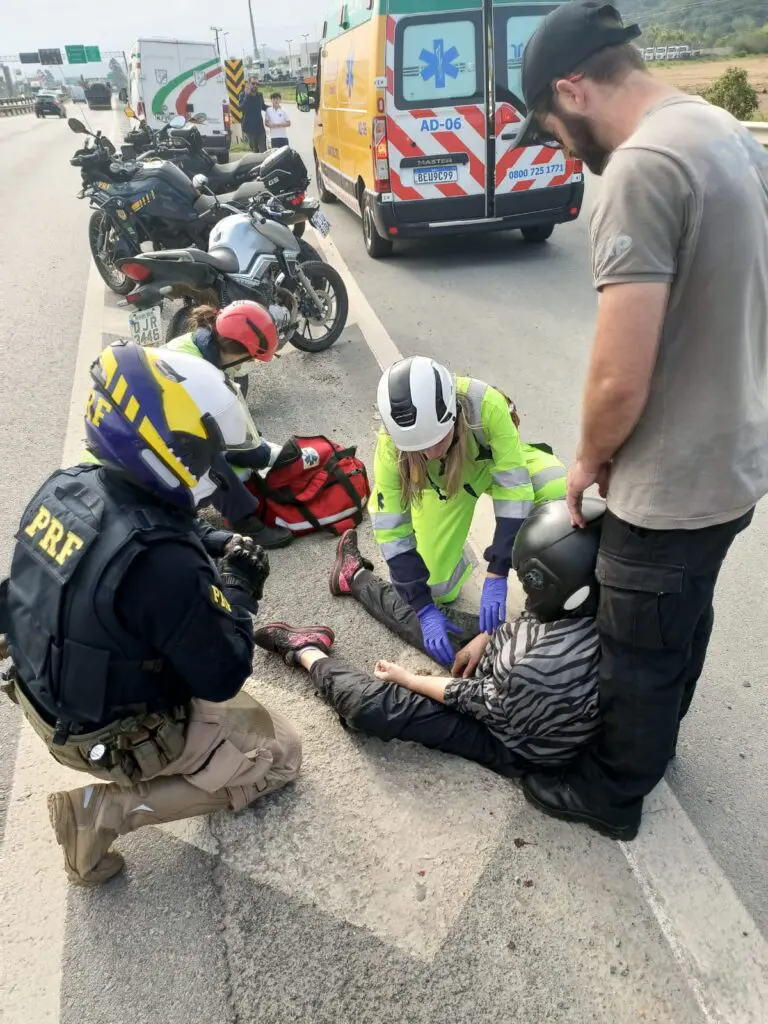 (Centro de Atendimento Socioeducativo), Marcelo Zaranski e Emanuel de Barros, demonstram solidariedade e ação rápida num acidente ocorrido na BR 101, sentido Joinville. No percurso, uma camionete se chocou com uma moto. A piloto da moto foi arremessada ao chão, caindo quase em frente dos agentes que seguiam pela via. Imediatamente, a viatura parou ao lado e tratou de socorrer a vítima que corria o risco de ser atropelada pelos veículos que seguiam pela BR 101. O agente Emanuel tratou de segurar o trânsito enquanto que o agente Marcelo tratava de ajudar a vítima a ficar fora da área de risco. Foi uma ação rápida e segura que demonstra o preparo dos agentes para situações de extrema urgência. As medidas cabíveis foram tomadas até a chegada da Polícia Rodoviária Federal e equipe médica.