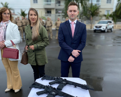 A segurança pública no Alto Vale do Itajaí recebeu um reforço importante com a entrega de 21 miras eletrônicas e dois fuzis Taurus T4 calibre 5.56 à Polícia Militar, graças a uma parceria entre o Ministério Público de Santa Catarina (MPSC) e a Polícia Militar de Santa Catarina (PMSC). O investimento de R$ 110.370,00 foi viabilizado com recursos provenientes de penas alternativas, decorrentes de acordos de não persecução penal celebrados pela 3ª Promotoria de Justiça de Rio do Sul e pela Promotoria de Justiça de Ituporanga, no âmbito do projeto “Fundo de Penas Alternativas”, do Centro de Apoio Operacional Criminal do MPSC.