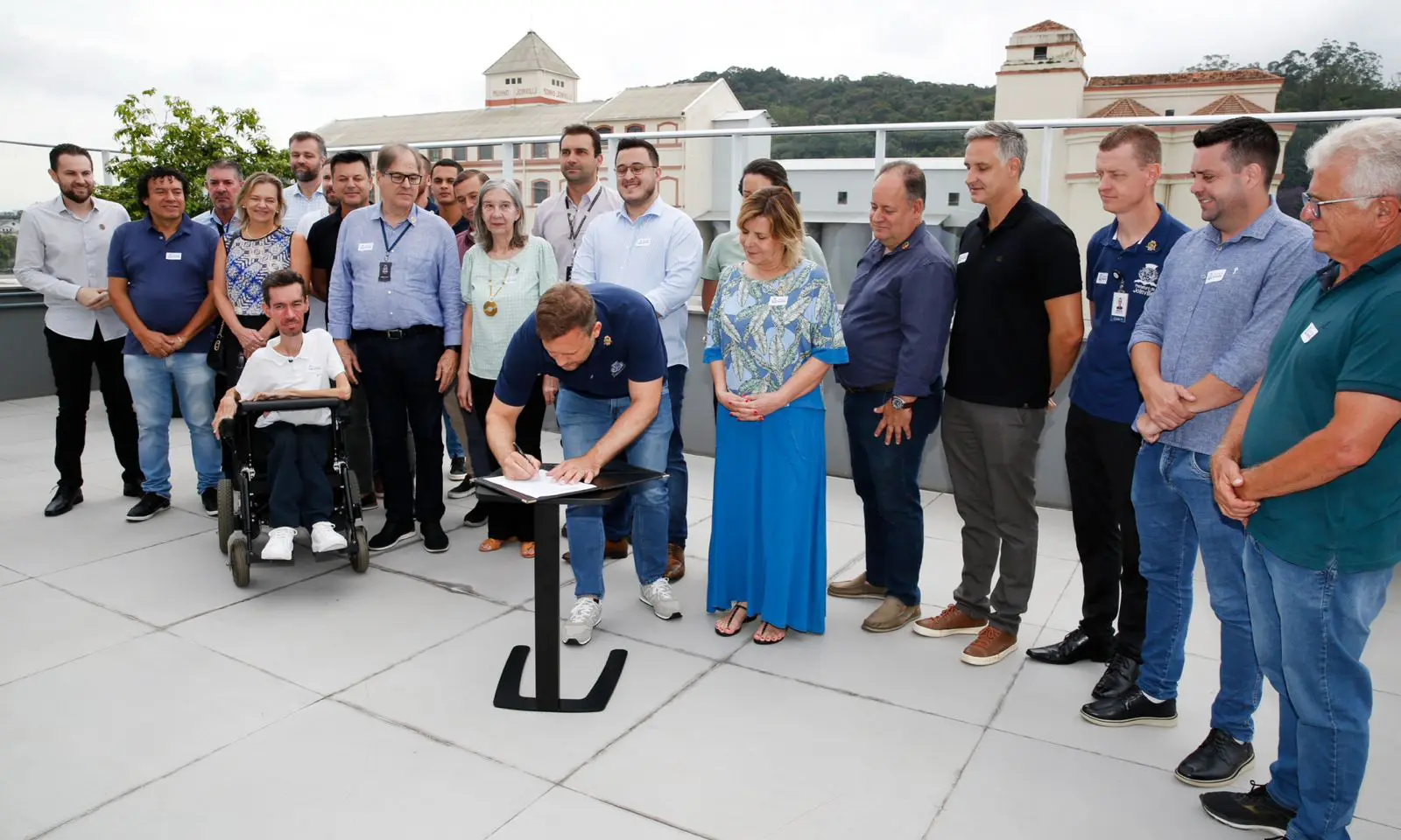 A cerimônia teve a presença do prefeito Adriano Silva, da vice-prefeita Rejane Gambin, de secretários municipais, do deputado estadual Matheus Cadorin, de vereadores e de lideranças, e ocorreu na Escola Sesi de Referência, que fica próxima do local onde que vai receber obras.