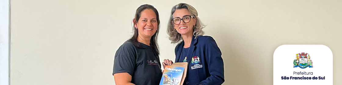 A produtora cultural Ana Paula da Silva Santos realizou, nesta segunda-feira (10), a entrega simbólica do álbum de figurinhas Colecionando São Chico à secretária municipal de Educação de São Francisco do Sul, Adriane Maria Mendes Guimarães. O projeto, contemplado pelo Prêmio Elisabete Anderle de Estímulo à Cultura, da Fundação Catarinense de Cultura (FCC), foi desenvolvido com o objetivo de aproximar os estudantes da história e do patrimônio cultural do município, por meio de uma proposta lúdica e educativa.