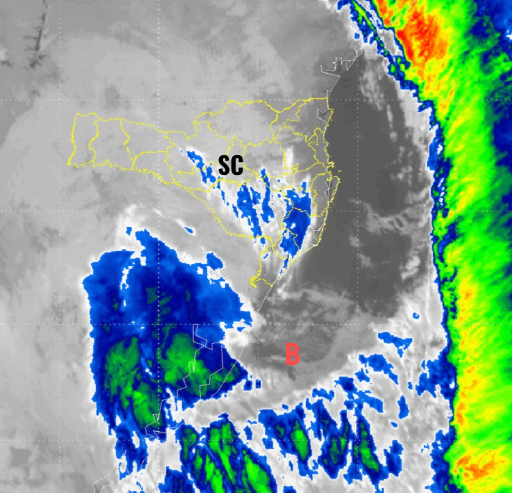 A Defesa Civil já vinha alertando desde o início da semana sobre a possibilidade de precipitação invernal. O cenário ideal se confirmou: frio intenso associado a elevados índices de umidade, além da influência de um ciclone extratropical que atua no litoral sul do país.